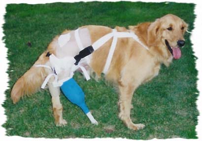 | Design and fabrication of a custom made canine prosthesis or adaptive device The procedure entails a trip to our facility and several days stay locally for casting, fitting , delivery and follow-up. These devices are custom made and need to be intimately fitting or they could cause sores and or not support your pet properly. You can send us pictures of the residual limb and sound limbs so that we can give you a better idea on design and costs. If you would like to arrange an appointment or discuss this further, please call the number below. Published Articles Thank you. Marty Mandelbaum CPO |